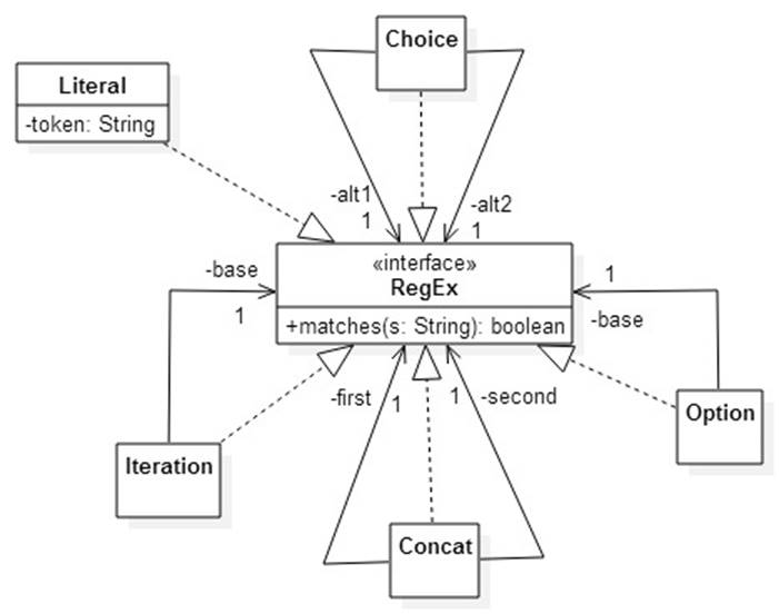 Implement and test a regular expressions language in Java. Use the following class diagram as your design: