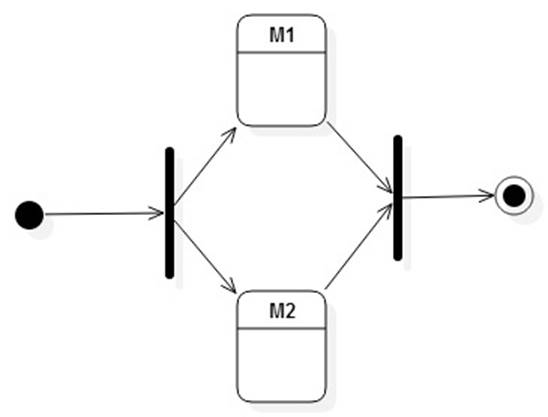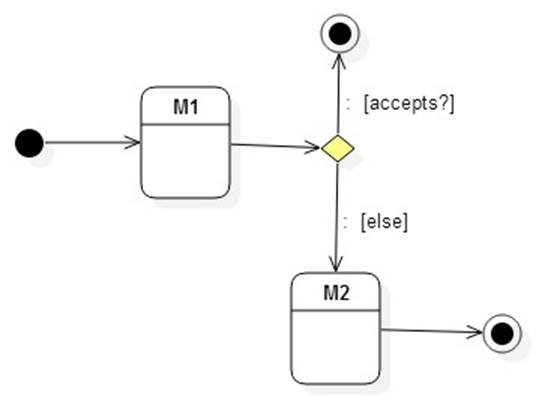 3. Add an empty transition from each of M1's final states to M2's start state.