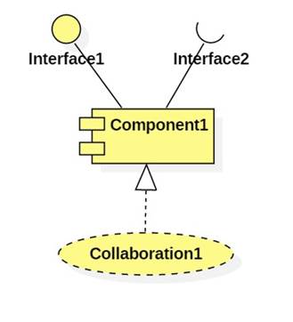 Often a component is implemented as a collection of objects that collaborate to realize the component's interfaces.