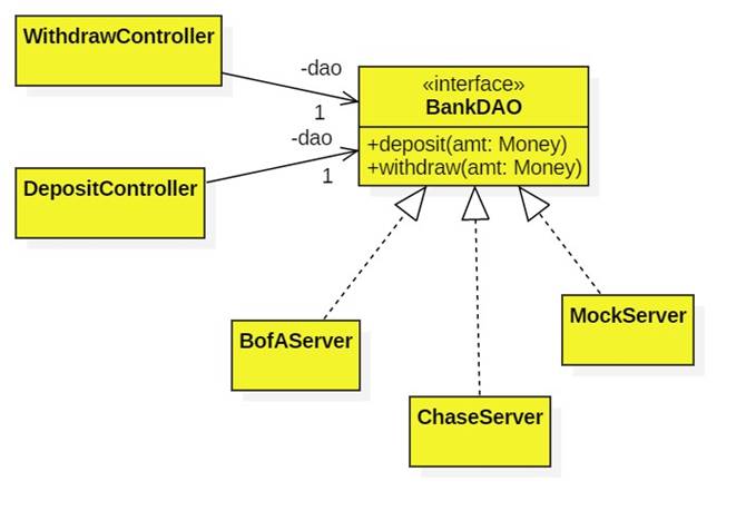 Later, as we learn how different bank servers work, we can provide different realizations of the interface: