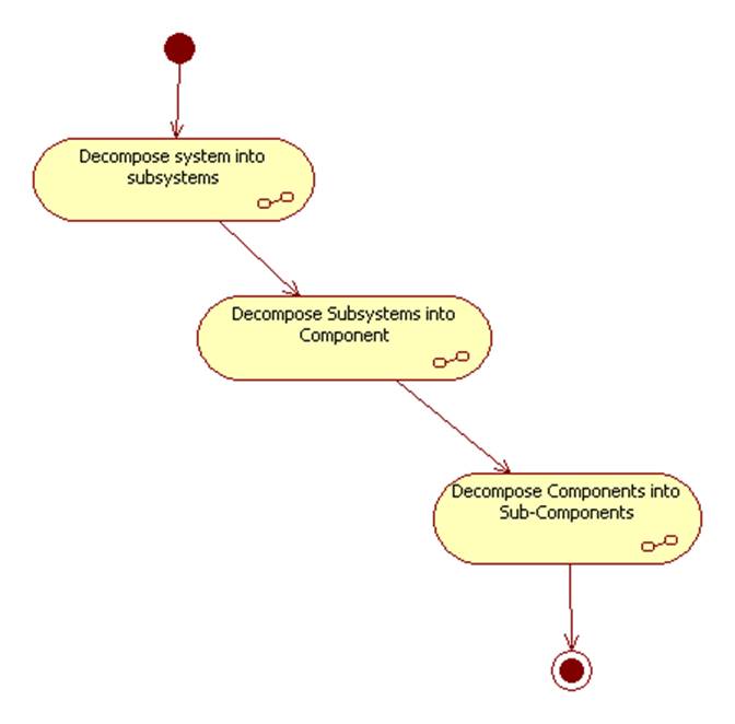 During the system design process the system is decomposed into a network of subsystems, each subsystem is decomposed into a network of components, and each component is decomposed into a network of sub-components: