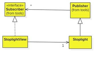 We use the Publisher-Subscriber pattern to alert the view when the color of the stoplight has changed: