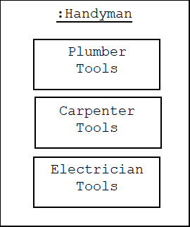 Now assume a Handyman class is to be defined. Handymen often find jobs as carpenters, so it might make sense to define Handyman as a subclass of Carpenter:
