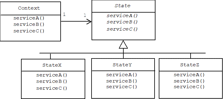 By contrast, suppose Handyman uses delegation in the form of the State Pattern. In this situation Handyman is the context, while Job is the state: