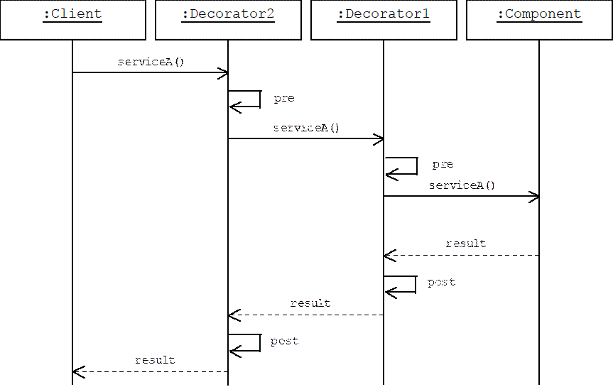 The chain of responsibility pattern, which is similar to the decorator pattern, simplifies the formation of delegation chains: