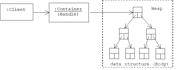 Generally speaking, a handle-body pair is a pair of objects collaborating to appear to the client as a single object. One object, called the handle, manages the interface with the client, while another object, called the body, provides all or some of the application logic.