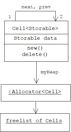 Object oriented programming doesn't simplify the task of implementing data structures such as linked lists or 2-3 trees. As in non object-oriented implementations, such structures are composed of many "cells" that are delicately linked together by pointers. Clients must exercise care when inserting or removing items from these structures. Often complicated re-balancing or re-linking operations are required. In many cases new cells must be allocated while old cells must be deleted.