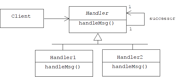 An abstract handler base class consists of a virtual handleMsg() function and maintains a reference to the next handler in the chain: