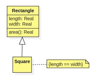 a constraint to the Square class that the inherited length and width attributes