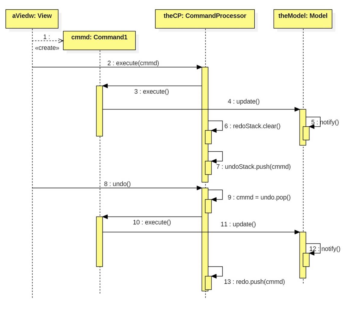 There are several variations of this pattern. The variation shown above is called the "smart command" variation because commands know how to execute themselves.