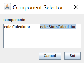 Implementing the Component Selector Dialog (see above) was tricky. I stole the following code: