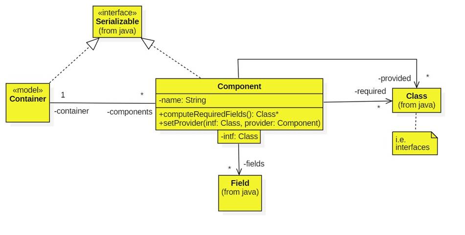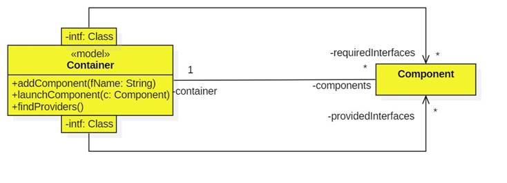 · The container contains a list of components. These components are indexed by the interfaces they require and by the interfaces they provide.