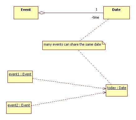 For example, some modelers use aggregation to simply show that an associated object is shared or held "by reference":