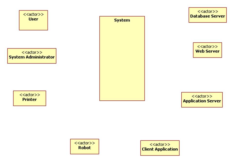 Note that actors (and the system itself) are simply classes of objects that inhabit the system's operating environment and interact with the system.