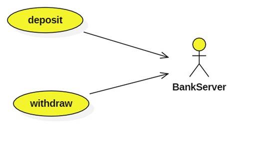 At this stage we're not sure what the bank server's API looks like. Indeed, different banks may have different APIs, so we model the bank as an interface: