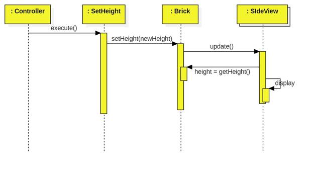 · Executing a SetHeight command calls the model's setHeight method, which updates the views: