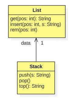 In this diagram a stack has a list. The stack operations can delegate to the appropriate list operations without exposing them to clients: