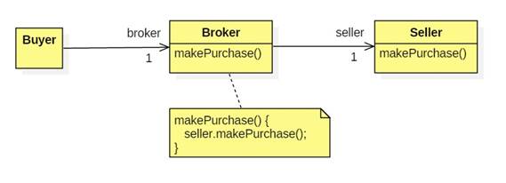 A middleman passes messages between a client and a provider. For example: