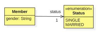 In this example gender and status are types. Gender is represented as a string, while status is one of two objects.