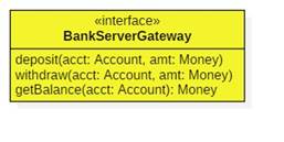 In an e-commerce application we may need to communicate with various bank servers (secondary actors). The APIs of these servers could vary, and we may not want to wade into the details during the modeling phase, so we can introduce a gateway interface, then later use the Adapter Pattern to implement it