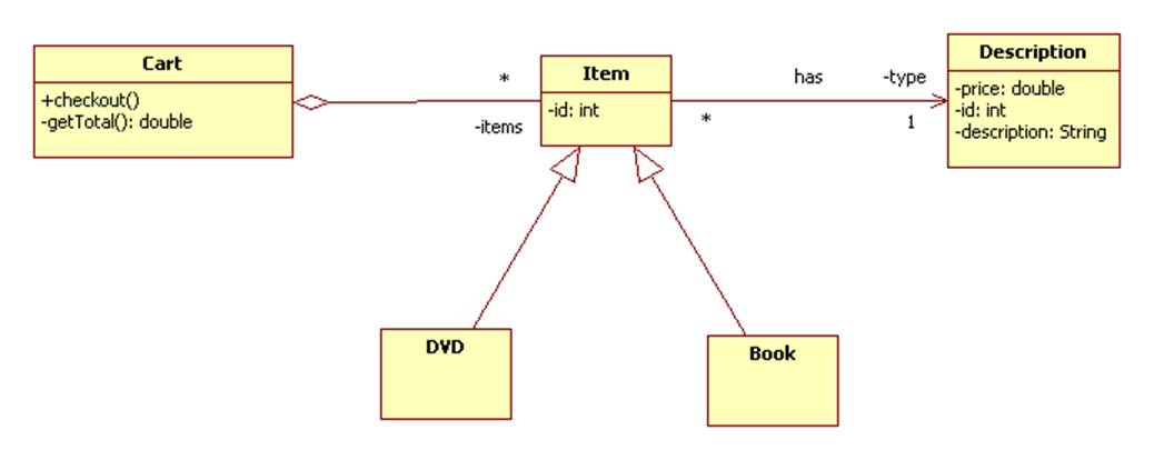 During a particular online shopping session a cart contains two DVD recordings of the movie The Matrix ($15.35 each), and a copy of the book UML Distilled ($22.40).