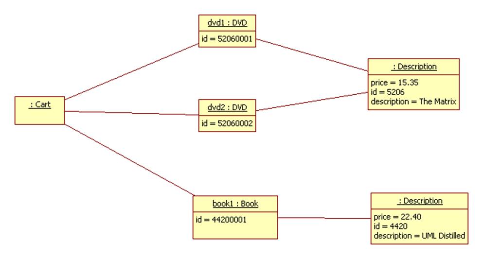 A scenario talks about specifics: a specific cart, a specific book, a specific DVD. These are not new classes, rather they are instances of existing classes in our business package.