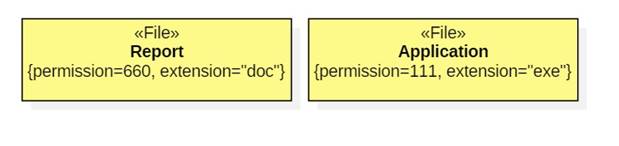 For example, an engineering profile might contain the stereotype <<File>> with properties owner, permissions, extension, and path.