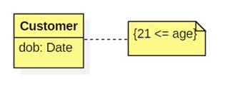 A constraint is a Boolean-values property that must be satisfied. It is often shown as a comment bracketed by curly braces: