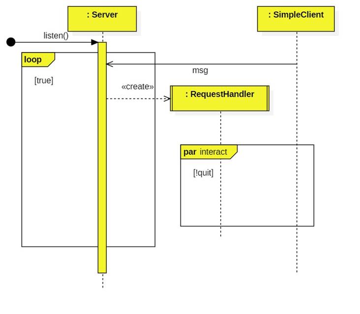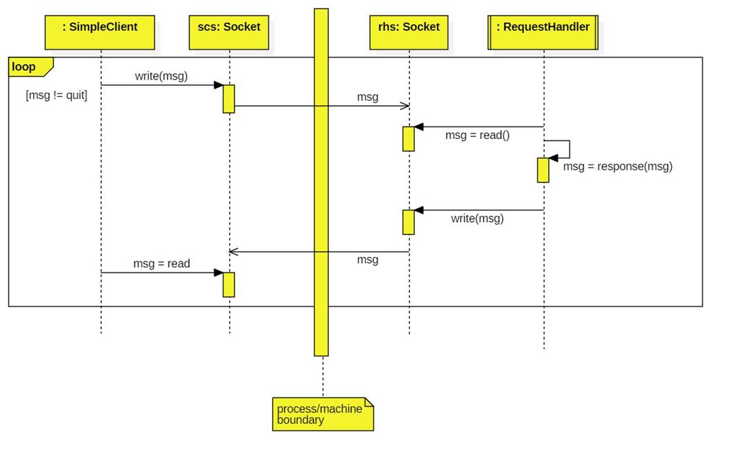 · In this diagram I am representing socket-to-socket messages as asynchronous messages. Although, this might be more appropriate for UDP sockets.