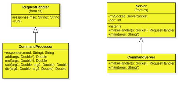 In a separate package (cp) we implement an extension of the request handler called a command processor and an extension of the server called a command server: