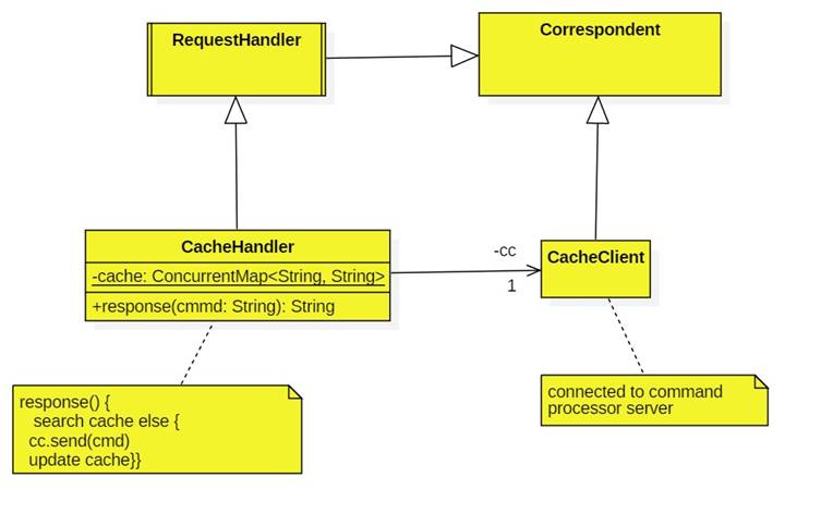 1. Because a correspondent only has a single socket, the cache handler needs a cache client which connects to the server.