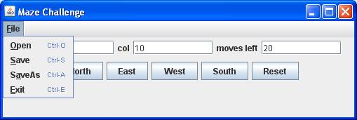 Implement Maze Challenge according to the above design. Turn in you assignment as an Eclipse project that can be run on any Eclipse platform. Be sure to test your work as assignments that won't run on the grader's Eclipse platform won't receive credit!