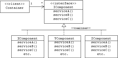 Notice that the container doesn't know the type of components it uses. It only knows that its components realize or implement the IComponent interface.