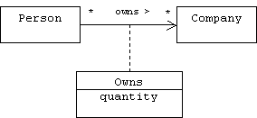 Consider the relationship: "Person P owns shares in company C." We might represent this relationship as a simple association between the Person class and the Company class: