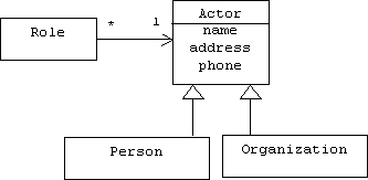 The first pattern concerns separation of a role such as clerk, customer, nurse, patient, etc. from the actor who plays the role. This separation solves synchronization problems that arise when the same actor plays many roles within a domain. Sometimes doctors are patients and clerks are customers.