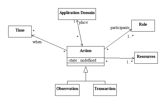 We often need to represent important actions that take place in the application domain such as transactions and observations. It is often important to keep track of when and where an action took place. It is also important to keep track of who participated in the action.