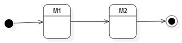 A composite state is a state AND an FSM. Entering the composite state enters the initial state of the FSM. If and when the FSM reaches a final state causes the transition out of the composite state.