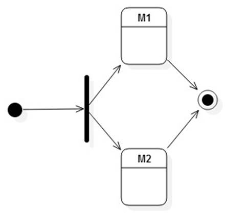 Fork and join are special transitions. A fork allows multiple states to be active simultaneously. A join waits for multiple source states to transition. Only when all transition is the destination state entered.