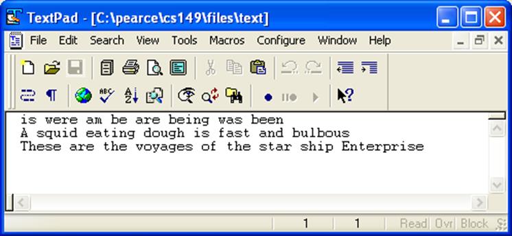 Executing the above code creates a file called "data" containing the integers 0 through 9. Of course these are Java integers, which means that the file can't be easily read by a program written in another language. In particular, trying to read data using an ordinary text editor fails miserably. To read the file, we need another Java program. The following fragment reads the file and displays the contents: