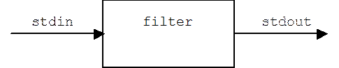 Normally, the source of stdin is the keyboard while the destination of stdout is the monitor. However, using pipes and redirection, users can easily reset the source of stdin to be a file or the stdout of another filter. Similarly, the destination of stdout can be a file or the stdin of another filter. Thus, users can chain together filters to form pipelines. For example, the shell command: