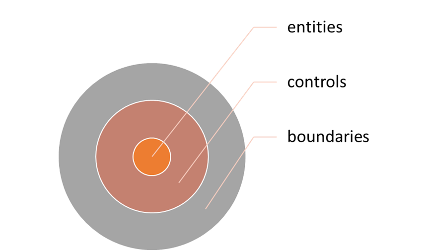 The analysis model consists of entity, control, and boundary classes usually arranged in concentric layers: