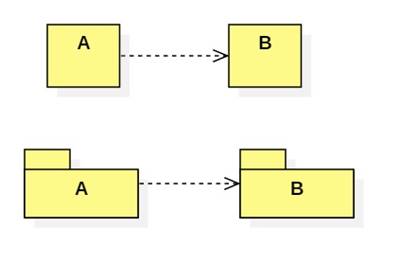 The UML dependency arrow is meant to represent the idea of dependency between classes, packages, components, and other UML elements:
