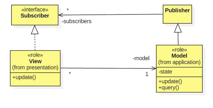 Notice the one-way associations connecting views and controllers to the model. This is the crucial feature of the MVC architecture.