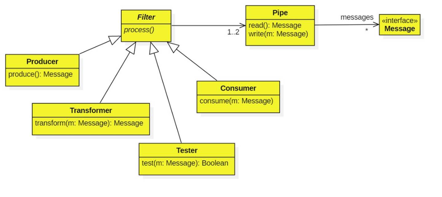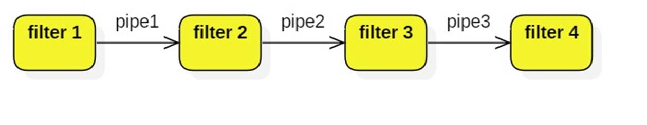 A pipeline consists of a sequence of filters connected by message queues called pipes.