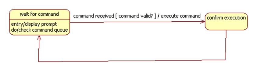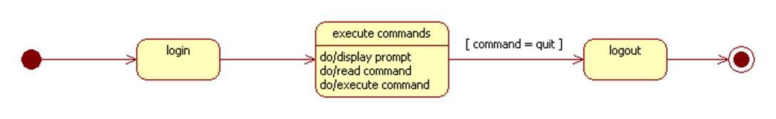 The following example shows two styles of specifying the statechart diagram of a composite state: inline or include a different diagram: