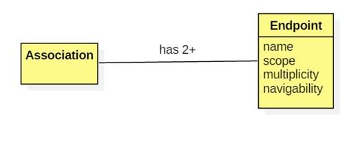 A binary association has two endpoints. (An N-ary association has N endpoints.)