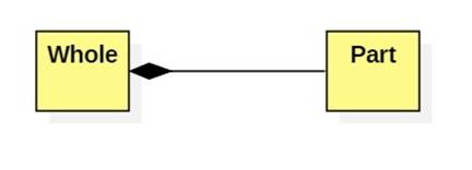 In composite aggregation parts are not shared. Destroying the whole destroys the parts. A solid diamond on the whole side of the association is used to indicate composite aggregation. For example: