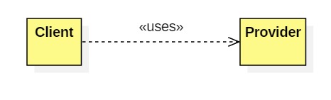 This means that the client uses services provided by the provider. More generally, this means that changes to the provider may require changes to the client. This could happen if, for example, someone changes the name of a Provider method that is called by the client.
