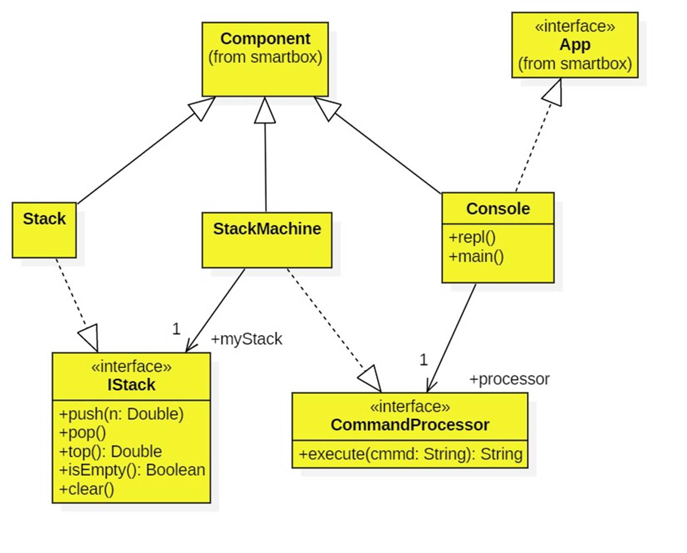 Next we need a stack machine component that implements CommandProcessor and requires an implementation of the IStack interface: