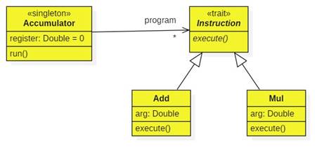 Initially, there are two types of instructions: Add(arg) (adds arg to register) and Mul(arg) (multiplies register by arg).